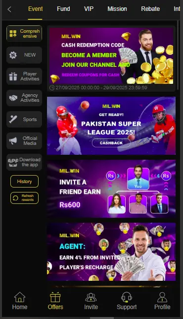 You can invite friends to join Mil Win. Each friend gives you a bonus. This is an easy way to earn extra money.