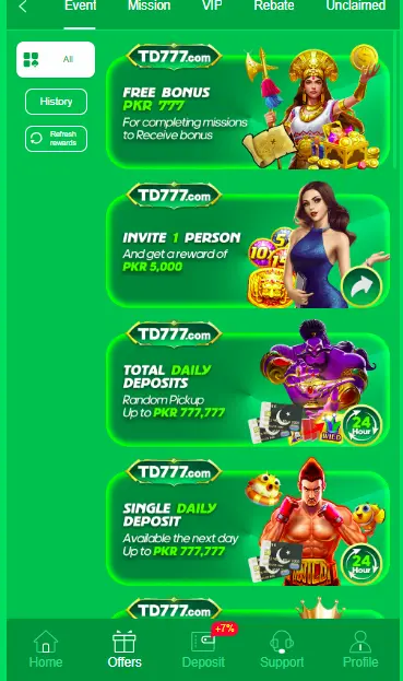 TD777 Game supports deposits through Easypaisa, JazzCash, and bank transfers. Recharges are confirmed instantly, so users can start playing without delay. Withdrawals are processed quickly, usually within minutes. The app uses encrypted systems to ensure safe transactions. This makes it one of the most trusted earning games in Pakistan.