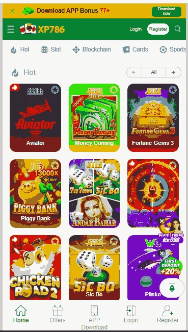 Open your phone's browser and search for "XP786 Game official site." Press the download link given on the home page. Enable installation from unknown sources in phone settings. Finish the installation and open the application. Log in to create a new account for game playing.